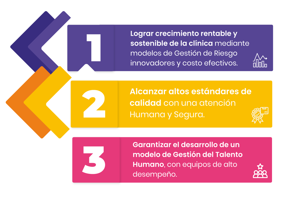 Prestar servicios de salud de alta complejidad orientados a una atención humanizada y segura, generando confianza en nuestros colaboradores y clientes; garantizando sostenibilidad de la organización, mediante modelos de gestión de riesgos y comprometidos con el medio ambiente.